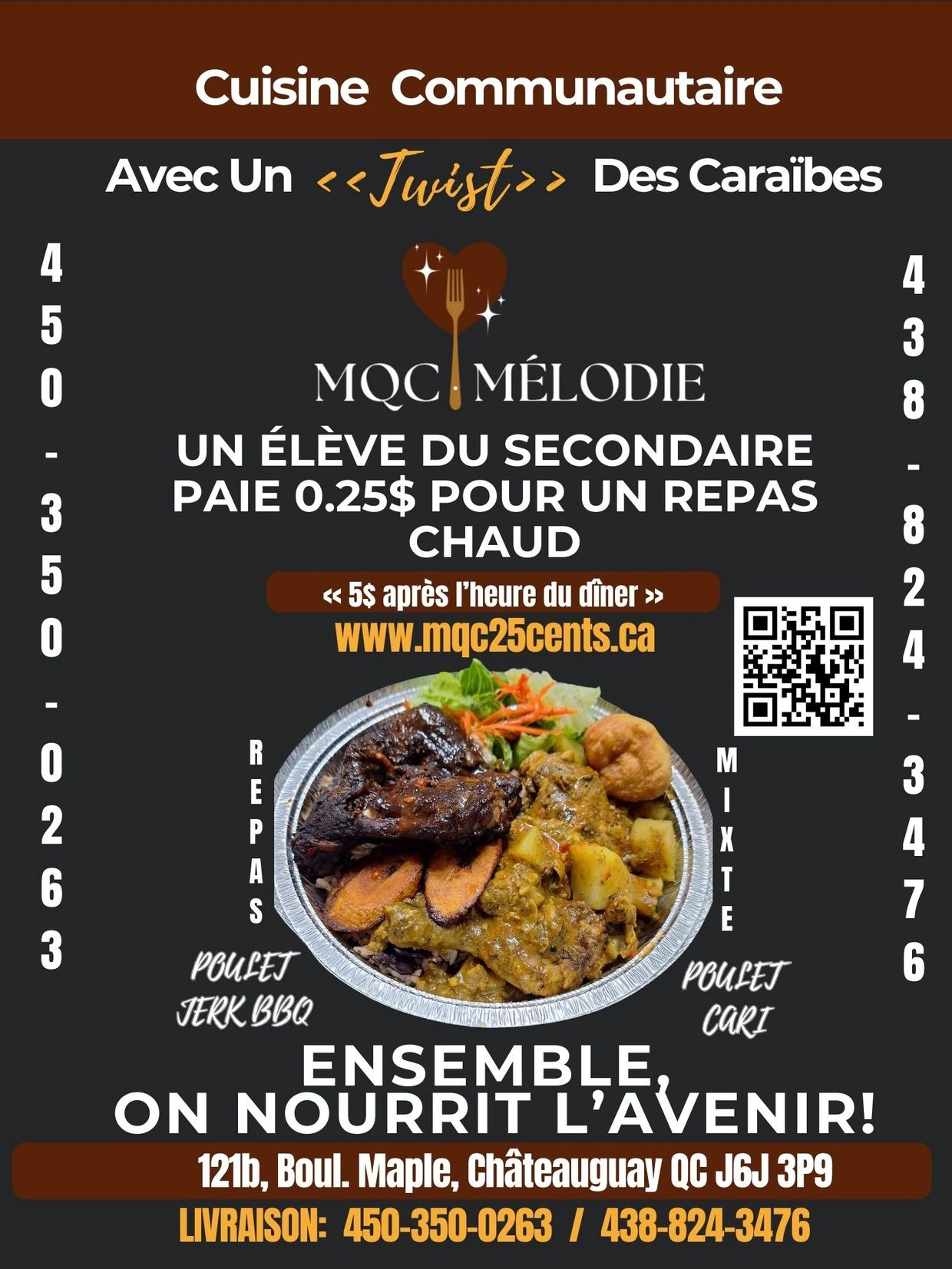 Mélodie QC Canada sert plus de 200 repas chauds par semaine, 800 par mois aux élèves du secondaire pour seulement 0,25 $.