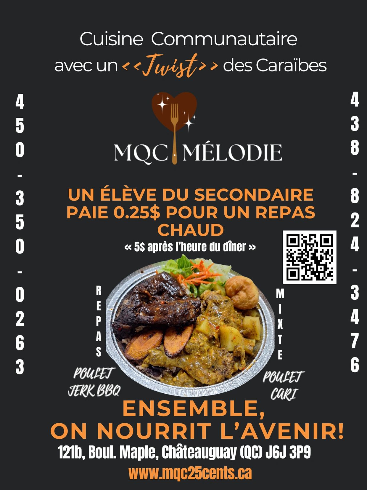 Mélodie QC Canada sert plus de 200 repas chauds par semaine, 800 par mois aux élèves du secondaire pour seulement 0,25 $.