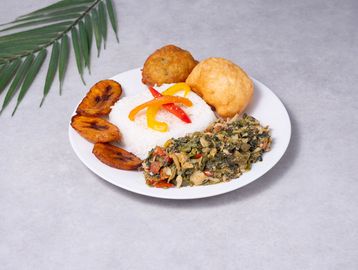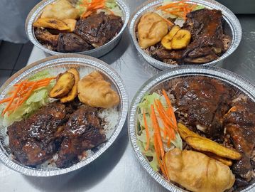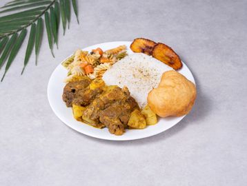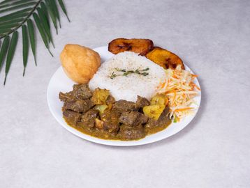 Chaque repas inclus: Riz , Salade, Plantains et Petit Pains Frit. Every meal includes: Rice, Salad, Plantains and Fried Dumpling.